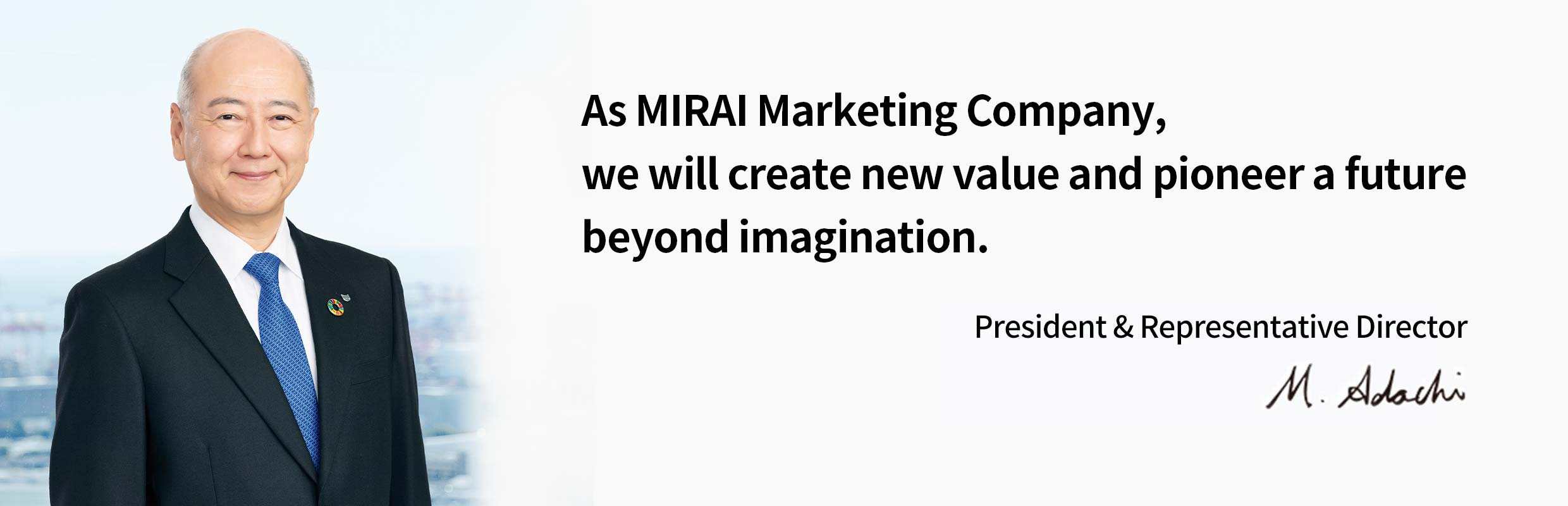 Last year, in response to this social environment, the Group established its purpose: bringing together hopes and ideas with technologies to create a future beyond imagining. We are committed to working as one team to build a sustainable society through co-creation and collaboration with our stakeholders. Moreover, we declared ourselves the MIRAI Marketing Company, dedicated to pioneering a brighter future by utilizing our marketing capabilities.