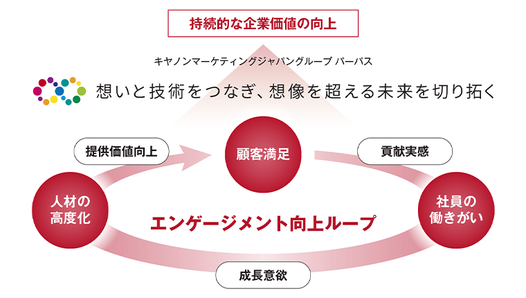 グループ従業員意識調査によるエンゲージメントの可視化および向上の取り組み継続により、エンゲージメント向上ループを確立し、持続的な企業価値の向上につなげていく。