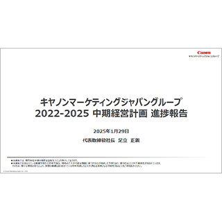 キヤノンマーケティングジャパングループは、持続的な成長と中長期的な企業価値向上を目指し、「2021-2025 長期経営構想」を策定しております。その基本戦略に基づき、2025年ビジョンの実現及び経営指標の達成に向けた実行計画として「2022-2025 中期経営計画」を策定し、推進しております。