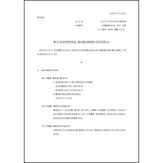 株主総会で報告および決議された内容をお知らせする決議ご通知です。