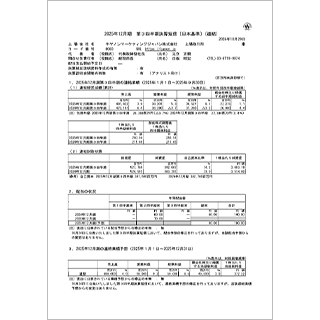当業績予想は、現時点で入手可能な情報に基づき当社が判断しており、潜在的なリスクや不確実性が含まれます。今後の様々な要因の変化により、当業績予想と実績が乖離する可能性があります。予想の修正が必要な場合には速やかに公表いたします。