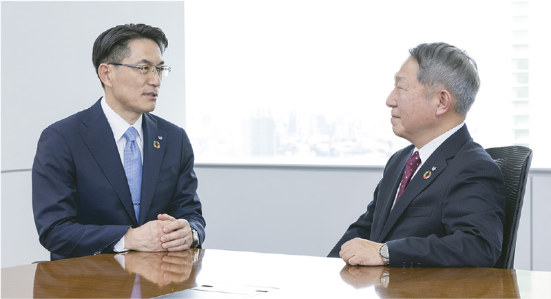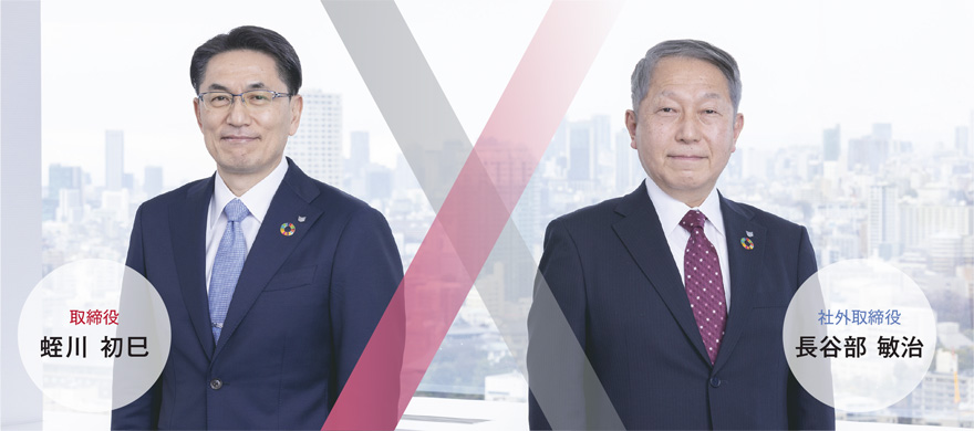 蛭川取締役、長谷部社外取締役が、当社グループの事業変革、強み、持続的成長に向けた取り組みについて対談を行いました。