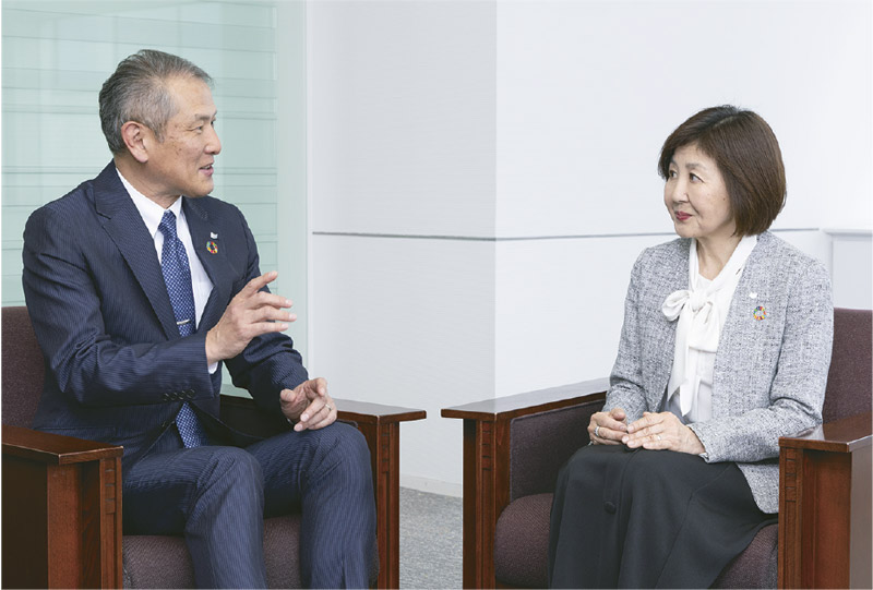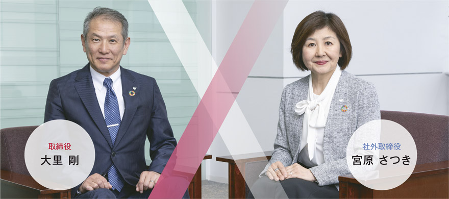 大里取締役、宮原社外取締役が、当社グループの企業価値向上に向けた財務戦略、成長投資、ガバナンス、組織風土などについて対談を行いました。