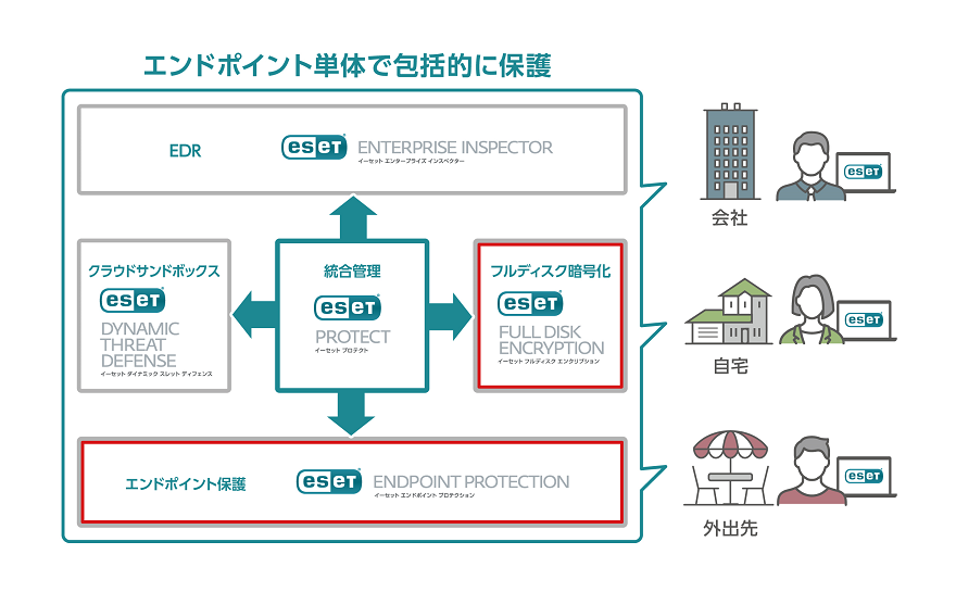 ESET製品群の包括的なセキュリティ対策により、更なる安心安全なテレワーク環境を支援します。