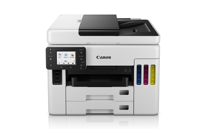 キヤノンは、特大容量タンク「GIGA TANK(ギガタンク)」を搭載したインクジェットプリンターにおいて、ビジネス向けの「GXシリーズ」を新たに展開し、新製品として、2段給紙カセットでファクス機能搭載の“GX7030”と、1段給紙カセットでコンパクトな“GX6030”のカラー複合機2機種を2021年5月中旬に発売します。