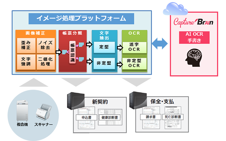 キヤノンマーケティングジャパン株式会社(代表取締役社長:坂田正弘、以下キヤノンMJ)とキヤノンITソリューションズ株式会社(代表取締役社長:金澤明、以下キヤノンITS)は、朝日生命保険相互会社(代表取締役社長:木村博紀、以下朝日生命)に、帳票処理業務のプロセスを変革することで保険関連手続きのスピードアップを実現する「イメージ処理プラットフォーム」をこのほど構築しました。クラウド型AI OCR基盤「CaptureBrain」との連携による読み取り精度の向上や自動化、AIによるリアルタイム学習で、新契約・支払業務において25%の効率化を実現しています。キヤノンMJとキヤノンITSは、中堅・中小企業から大手企業まで業種・業務に特化したデジタルソリューションの提供を強化し、お客さまのバックオフィス業務のDXを支援していきます。