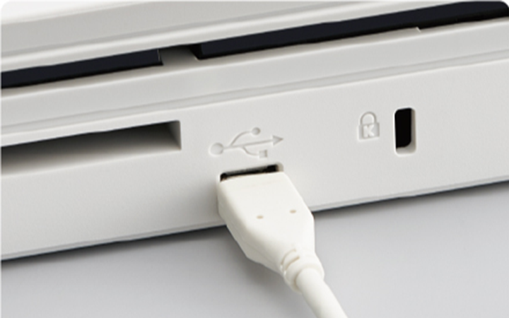 USBポートから電源供給されるため、スキャナー本体を付属のUSBケーブル1本でパソコンと接続するだけで、手軽にスキャンすることができます。そのため本体を充電したり、ACアダプターを持ち歩いたりする必要はありません。配線の煩わしさもなく、簡単に使用することが可能です。