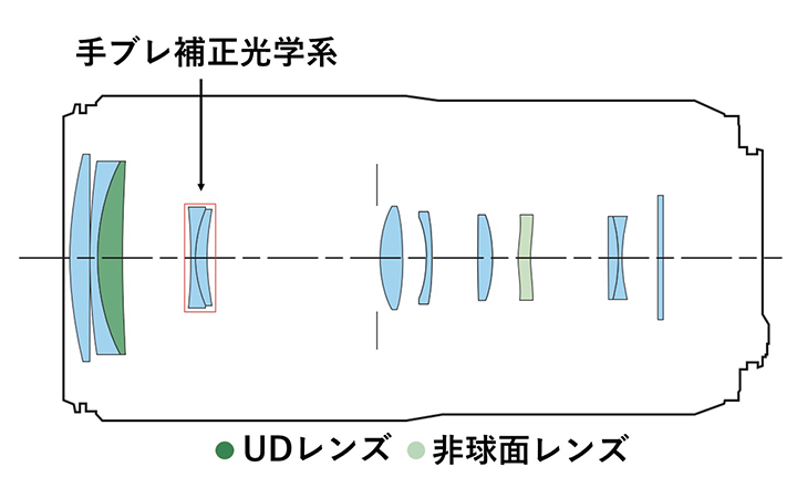「UD(Ultra low Dispersion=特殊低分散)ガラス」を用いたレンズ。