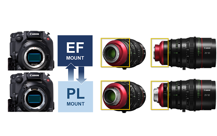 EFマウントでは、EFマウントの通信プロトコル※2に対応し、PLマウントでは、映像制作業界で広く採用されているCooke社の「/i Technology※3」に対応しています。撮影時のさまざまなレンズ情報をマウント経由でカメラ本体に表示・記録することが可能です。これにより、撮影現場だけでなく撮影後の編集作業においても効率的な映像制作を支援します。