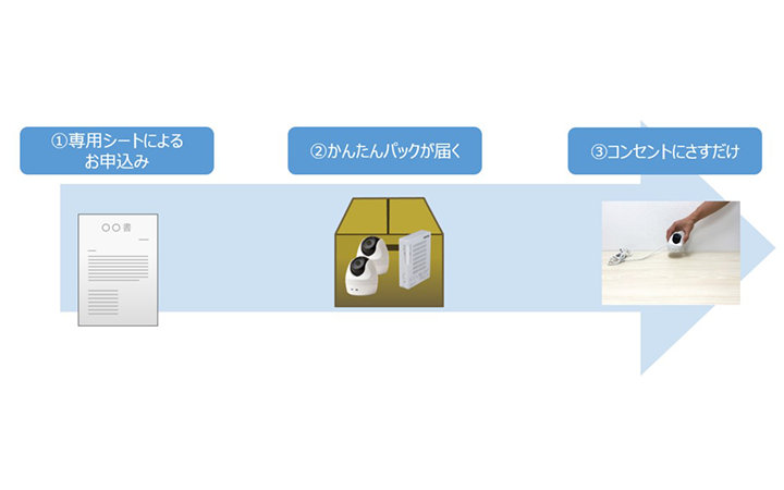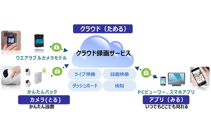 “クラウド録画サービス”はこれらの課題解決を支援するため、コンセントにさすだけで防犯カメラの利用が可能な据え置き型の“クラウド録画サービス かんたんパック”と、LTE回線を通じ映像と音声で現場と拠点をつなぎ、遠隔から作業支援が可能な携行型の“クラウド録画サービス ウエアラブルカメラモデル”の2サービスの提供を開始します。現場での工事レス・有線回線レス・録画装置レスを実現し、簡単かつ手軽に導入が可能です。さらに、契約から利用開始後の運用サポートまでを包括することにより、導入後も安心して利用可能です。