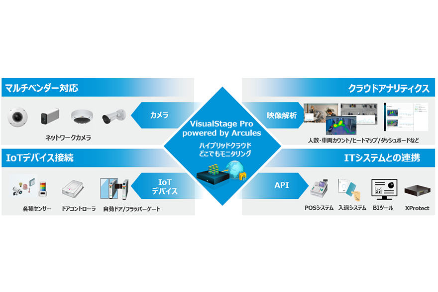 キヤノンマーケティングジャパン株式会社(代表取締役社長:足立正親、以下キヤノンMJ)は、 ハイブリッド型クラウド映像プラットフォーム“VisualStage Pro powered by Arcules(以下VisualStage Pro)”を2022年7月1日に国内導入し、映像の一元管理と利活用による企業内DXを支援します。“VisualStage Pro”は、Arcules(アーキュリーズ)社(CEO:Andreas Pettersson、本社:アメリカ合衆国 カリフォルニア州)が開発する、キヤノングループ初のハイブリッド型VSaaS(クラウドによる映像監視サービス)です。