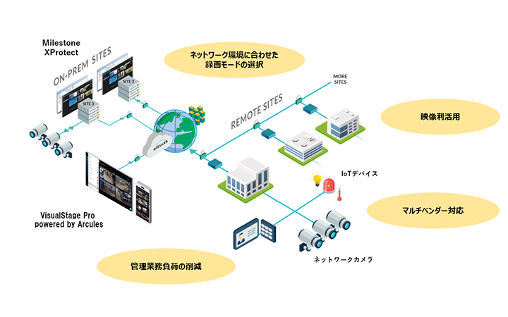 さらにArcules社の独自技術により、クラウドとオンプレミスのハイブリッドでの録画管理を実現しています。これにより、特に多拠点多台数のカメラを有する大企業において、万が一通信回線に障害が発生した場合でもゲートウェイ内に録画データを一時保存し、復旧時に自動でクラウドへアップロードするため、録画欠損を回避することが可能です。