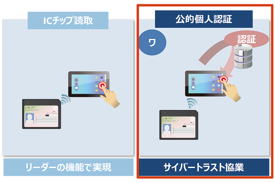 - マイナンバーカード、運転免許証、在留カードのICチップ読取に対応。