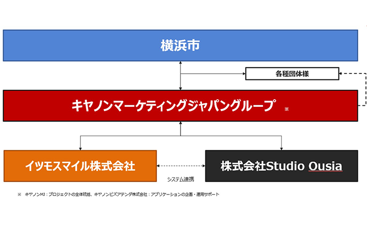 この実証実験は、横浜市のデジタルによる創発・共創の取り組み「YOKOHAMA Hack!※2」に基づき実施されるものです。キヤノンMJは本実証実験で中核となる地域情報プラットフォーム「ウエル・タウン(仮称)~横浜コミュニティサイト~」の開発や運用支援を行います。