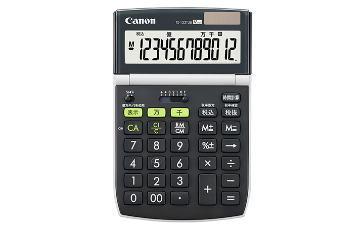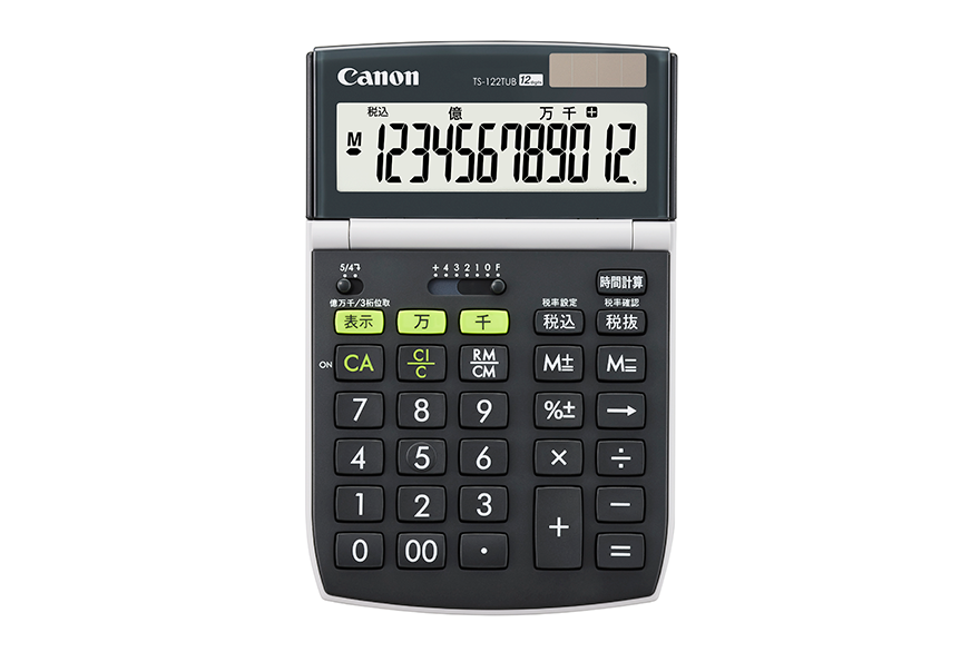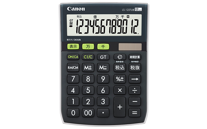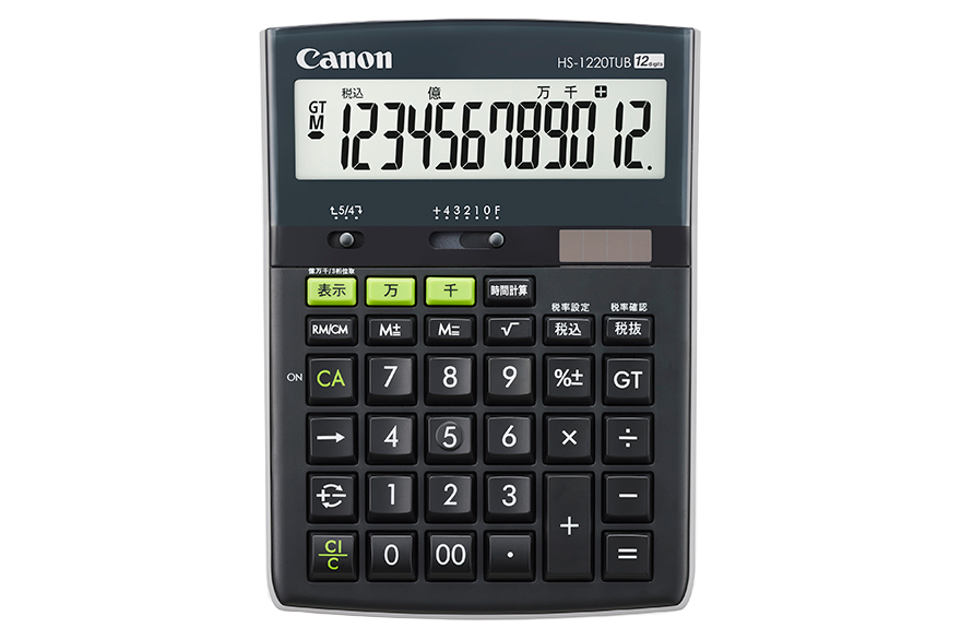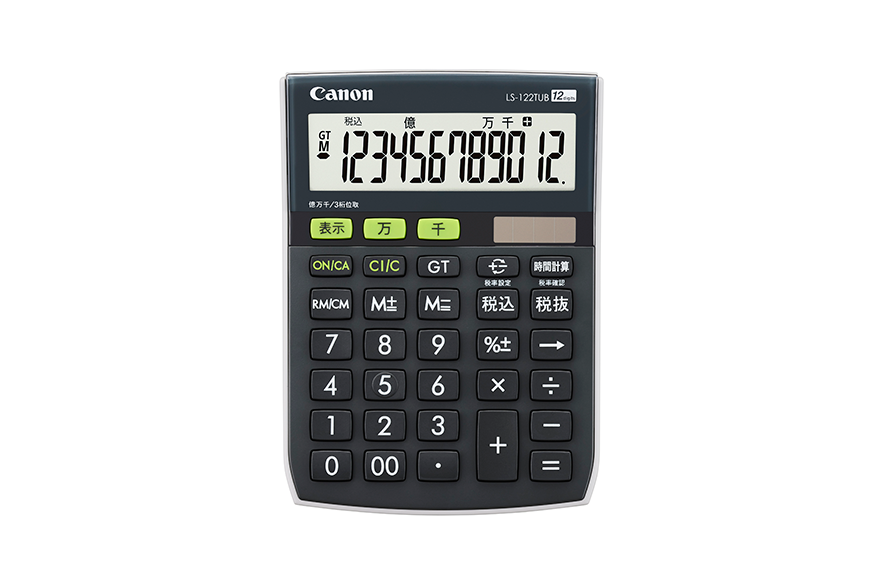 このたびキヤノンMJは、キヤノンの電卓として初めて植物由来の原料を使用し環境に配慮した12桁卓上電卓“HS-1220TUB”“TS-122TUB”と12桁ミニ卓上電卓“LS-122TUB”を発売します。キヤノングループが掲げる企業理念「共生」のもと、キヤノンMJグループは環境問題を重要な経営課題と捉えており、サステナビリティ経営を推進しています。このたび発売する3モデルはすべて、植物由来の原料を利用して作られるバイオマスプラスチック※1と、再生プラスチック※2を採用しています。エコマーク※3・バイオマスマーク※4の認定を取得しているほか、環境省が定めるグリーン購入法※5にも適合しており、製造時の環境負荷を低減しエシカル消費※6を促進します。環境に配慮した製品をお客さまにご提供することにより、持続可能な社会の実現に貢献します。このほか、単位が大きい数字の認識や入力に便利な千万単位機能など高い利便性や機能性を備えています。