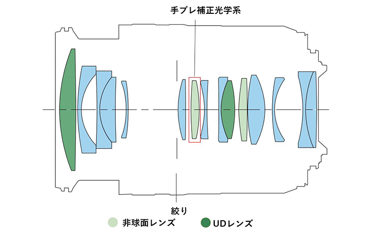 UD(Ultra low Dispersion=特殊低分散)ガラスを用いたレンズ。