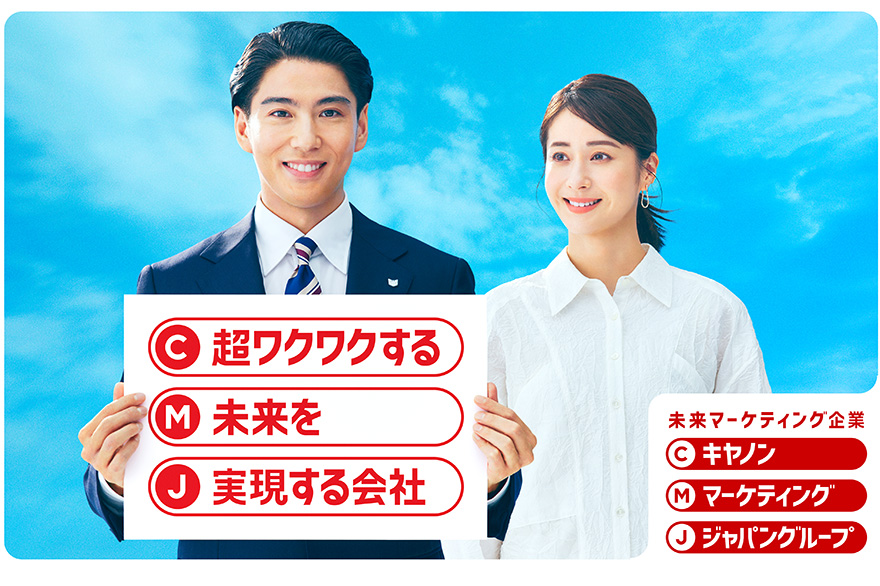 キヤノンMJグループは2024年1月に、パーパス「想いと技術をつなぎ、想像を超える未来を切り拓く」を発表し、キヤノンMJグループを象徴する表現として「未来マーケティング企業」を宣言しました。本CMではキヤノン(C)マーケティング(M)ジャパン(J)の頭文字を、