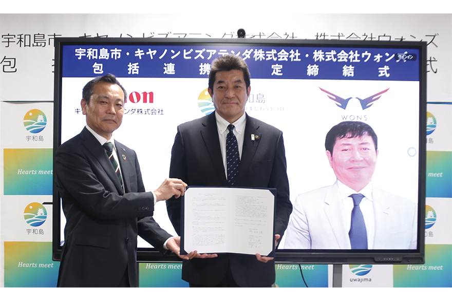 キヤノンBAと宇和島市、ウォンズの包括連携協定について