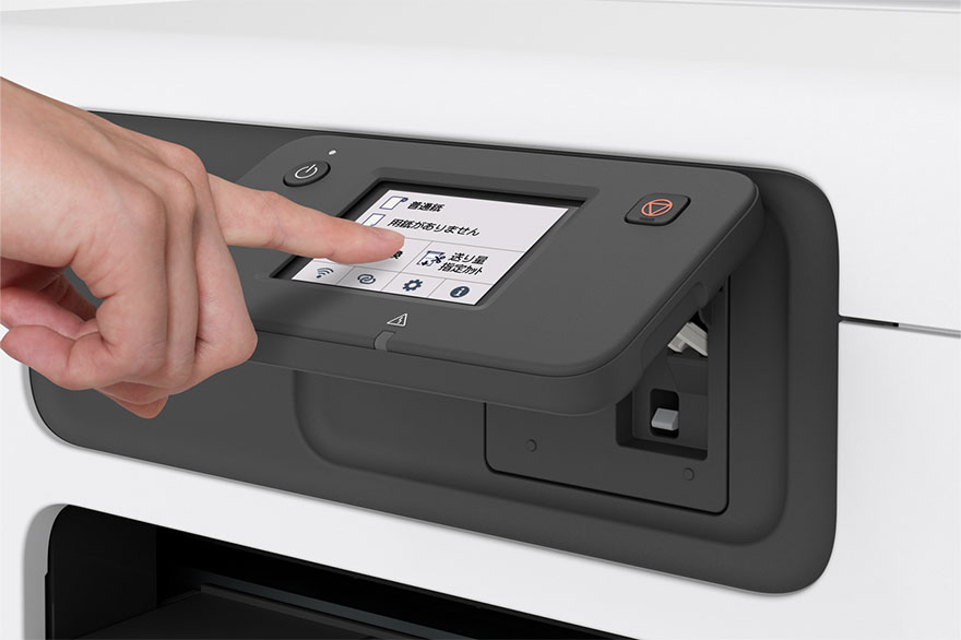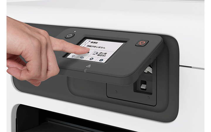 用紙セットやインク充填など印刷に関わる全ての操作を本体前面から行うことができる省スペース設計を継承しつつ、操作パネルをチルト式にしたことで快適な操作性を提供します。ユーザーの目線に合わせて角度調整ができるため、机上はもちろん、棚の下の段などに置いても画面の操作や確認がしやすく、設置場所の選択肢が広がります。またASFを使うことで、A3・A4などの定型用紙や、はがき、封筒、薬袋、ラベル紙といったさまざまな用紙に印刷できます。顧客提出用のA1等倍図面と社内確認用の縮小図面、飲食店メニューの掲示用ポスターとテーブルに置くフライヤーなど、同じコンテンツを目的に応じたサイズ違いで出力するのにも便利です。