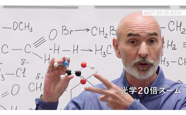 “CR-N400/CR-N350”は、光学20倍ズームレンズを搭載しています。また、フルHD撮影時は、一般的なデジタルズームとは異なり、高画質を維持したままで最大約40倍(焦点距離約29.3~1202mm相当※3)のズームが可能な「アドバンストズーム」を搭載し、ワイドの俯瞰映像から迫力のあるズーム映像まで、一台で幅広いシーンの撮影が可能です。