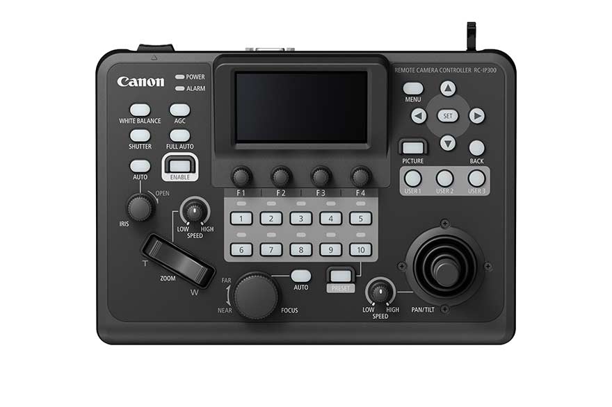 昨今、映像コンテンツの増加に伴い、制作作業の効率化や低コスト化、省人化に寄与するリモートプロダクションが拡大しています。キヤノンは、こうした市場に向けて、映像制作用リモートカメラコントローラーの新製品“RC-IP300”を発売します。“RC-IP300”は省スペースを実現する小型・軽量でありながら、3.5インチのタッチパネルや充実した操作部を搭載し、豊富な機能を直感的に実行することが可能です。効率的で高品質な映像制作をすることが求められる放送局をはじめ、企業の社内制作や大学のオンライン講義の撮影などさまざまな場面で、リモートプロダクションの利便性向上に貢献します。