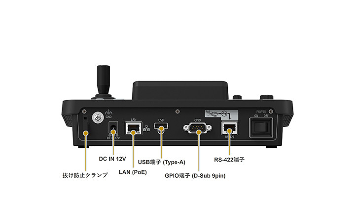 本体の大きさは約255mm(幅)×約180mm(奥行き)×約93mm(高さ)※2、質量は約1.3kgと、小型・軽量ボディーを実現しました。PoE※3に対応し、ケーブル1本で給電・制御ができるため、スタジオのバックヤードのような機材が多く設置された、限られたスペースでも柔軟な設置が可能です。また、直感的に操作ができるボタンやダイヤルを多く搭載しているほか、それらを操作の種類ごとに分けて配置しており、リモートカメラのパン、チルト、ズーム操作やフォーカス、絞りなどの制御が容易です。さらに、ユーザーが使用頻度の高い機能を独自に割り当てられる「ユーザーボタン」を備えており、簡単なボタン操作で素早く機能を実行することができます。