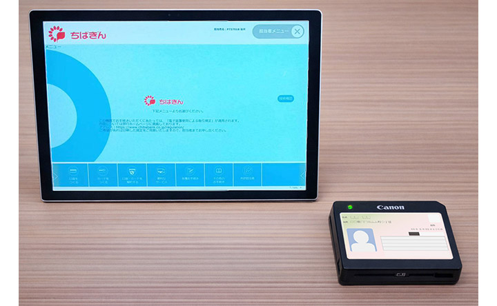 当社が提供するキヤノン電子株式会社製の読み取りデバイスで、マイナンバーカードや運転免許証などのICチップおよび金融機関のキャッシュカード(IC・磁気)の読み取りに対応しています。