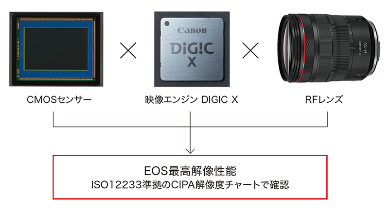 2020年7月8日現在発売済みのキヤノン製レンズ交換式デジタルカメラにおいて(キヤノン調べ)。ISO12233準拠のCIPA解像度チャートで確認