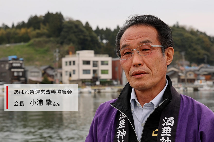 「あばれ祭は、生まれた時から太鼓・鉦・囃子の音が耳に染みついている祭り。1年、その祭りを軸に生活が成り立っていると言っても過言ではないです。(あばれ祭運営改善協議会 会長 小浦 肇さん)」