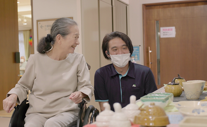 ICT化によって、介護記録は紙からデジタルへと進化。転記や報告にかかる時間が減り、職員が入居者と過ごす時間が増えています。