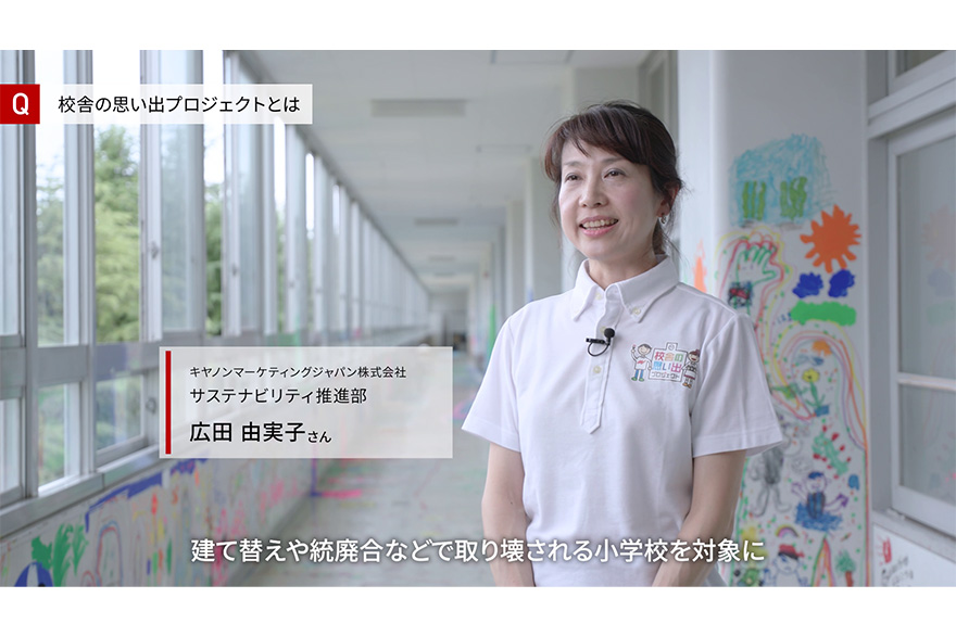 キヤノンマーケティングジャパンとぺんてる株式会社は、建て替えや統廃合により取り壊される小学校を対象に、2014年から校舎での最後の思い出づくりをサポートするプロジェクトに共同で取り組み、子どもたちの「思い出づくり」を支援しています。