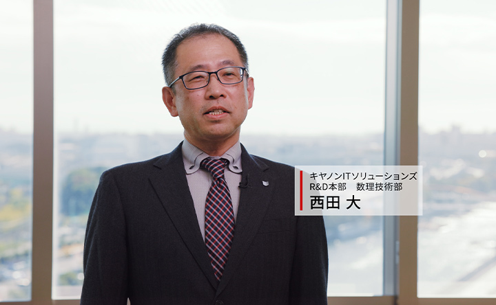 「キヤノンITSでは、サプライチェーンや生産、物流などのコンサルティングから導入まで幅広い経験があります。その知見をもとに大学の講義や校外研修を担当し、実務に近い学びを提供しています。(キヤノンITS R&D本部 数理技術部 西田 大氏)」