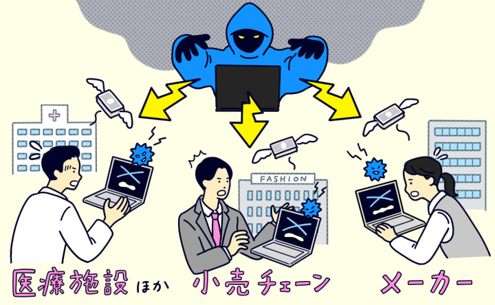また、標的となるのは民間企業に限りません。とある町の町立病院では、電子カルテシステム内の情報が暗号化され、診療業務が制限されました。