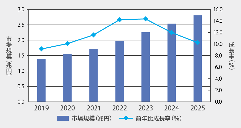 IT専門調査会社IDC Japanの調査によれば、国内データセンターサービス市場は、3年後の2025年に向けても年間平均10%以上の高い成長率が維持される見込みとなっている。