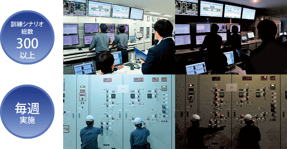 防災や減災のため、データセンター設備の障害や自然災害の発生時を想定した訓練を毎週実施。訓練シナリオ総数は300以上に及ぶ。毎年1回行っている大規模な「総合連動点検」では、災害や事故により発生する停電を想定し、電力会社からの給電停止時に発電機給電への切り替えが自動で行われることを確認している。