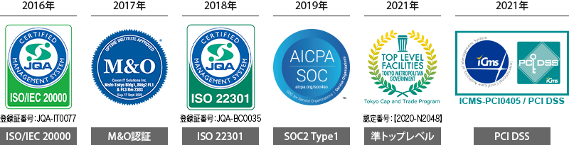 国際標準化機構(ISO)が定める「ISO/IEC 20000」や「ISO 22301」といった認証も取得済みだ。前者はITサービスマネジメントシステムに関する国際規格で、提供するITサービスの継続的な管理や高い効率性、継続的改善を実現する能力を示す。