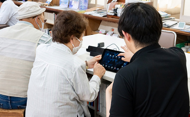 自治体から配布されたタブレットは利用できるアプリが限定されることが少なくないが、神山町の考え方はユニークだ。「配布したタブレットには地域アプリ『さあ・くる』以外のアプリも、あえて使えるようにしてあります。例えば脳トレゲームなども入っていて、その使い方をラボで教えています。高齢者のITリテラシーを高めることが大きな目的ですから」(青木さん)