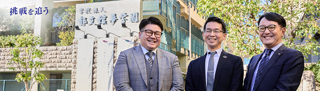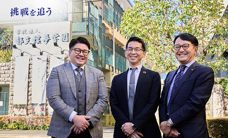 プロジェクトを担う同校 人材開発室 室長 藤井 崇史さん、同室 主任 榊原 賞さん、そして、共創パートナーであるキヤノンITS 文教ソリューション営業本部の田口 進一郎の三人に話を聞き、その“挑戦”に迫った。