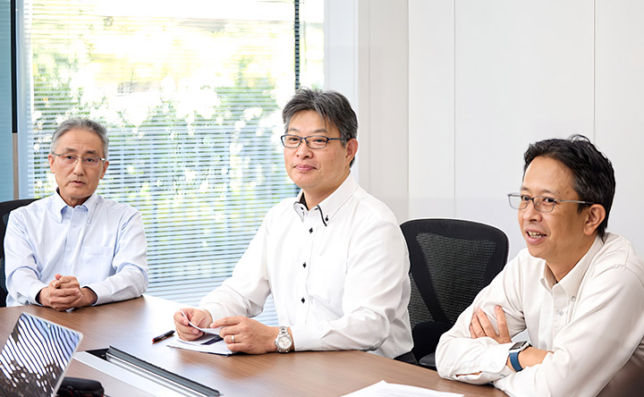 キヤノンMJと脱臭・除菌。なかなか連想しづらいかもしれませんが、一体どんなソリューションなのでしょうか。キヤノンMJの取り組みとそこに懸ける想いを、産業機器事業部 新規ビジネス推進部の月橋 裕太さん、岩根 知宏さん、加藤 直樹さんに聞いてみました。
