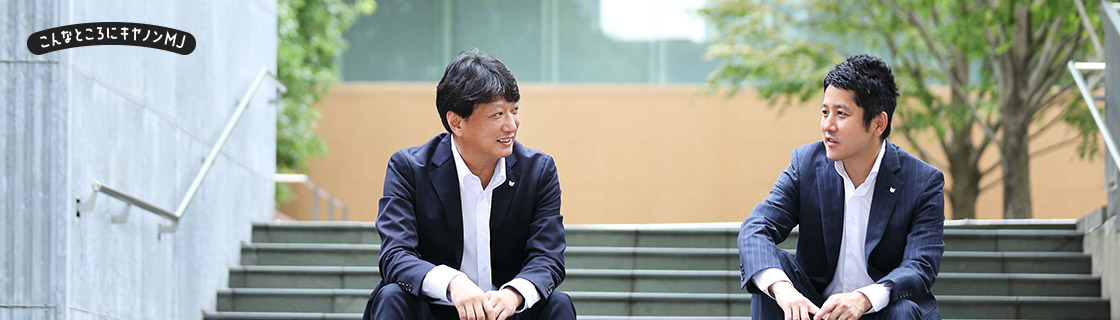 そんな中、課題解決への一歩を踏み出すカギとなるのが、キヤノンマーケティングジャパン(以下、キヤノンMJ)の画像ベースインフラ構造物点検サービス「インスペクション EYE for インフラ」。コンクリートの状態を撮影した画像を基に、AIがひび割れなどを自動検知するというもので、点検作業の高度化、効率化が期待できるといいます。具体的にはどのような仕組みになっているのでしょうか。そして、サービスに携わる人々が目指す社会のあり方とは。キヤノンMJ NVS企画本部の森川 泰久さんと武田 知樹さんに聞いてみました。