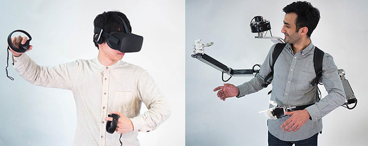 例えば、私たちが慶應大学と共同開発した「Fusion」というロボットがあります。これは、離れた場所にいる操作者とロボットアームの装着者が、まるで二人羽織のように“合体”して、同じ視点で空間を共有し、共同作業を行えるシステムです。ロボットアームを介して動作を教えることで、言葉だけでは困難な「身体の言語化」を可能にし、いままで伝達が難しかった動作なども伝えることができます。例を挙げると、子どもに靴紐の結び方を教えるとき、言葉で説明するより、手を取って一緒に結んであげた方が伝わりやすいですよね。