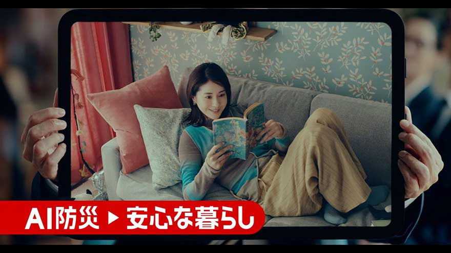 この度放映を開始する「AI防災」篇は、キヤノンMJグループのAIを活用した防災支援の取り組みについて紹介しています。本CMでは、キヤノンITソリューションズ株式会社(本社:東京都港区、代表取締役 社長:金澤 明)が提供している「水位測定AI」と「煙検出AI」を例に、一人ひとりが安心して生活できる未来の実現を目指していることを訴求します。