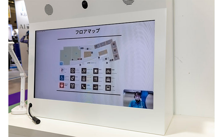 また、多言語対応も可能で、増加する外国人対応もスムーズ。さらにネットワークカメラと連携すれば、現地にいなくても周囲の状況が把握でき、的確な接客サービスを実現できます。来場者からは「モニター越しでも、対話と画面共有を使った案内ができてわかりやすい!顧客満足度も上がる!」と高評価でした。