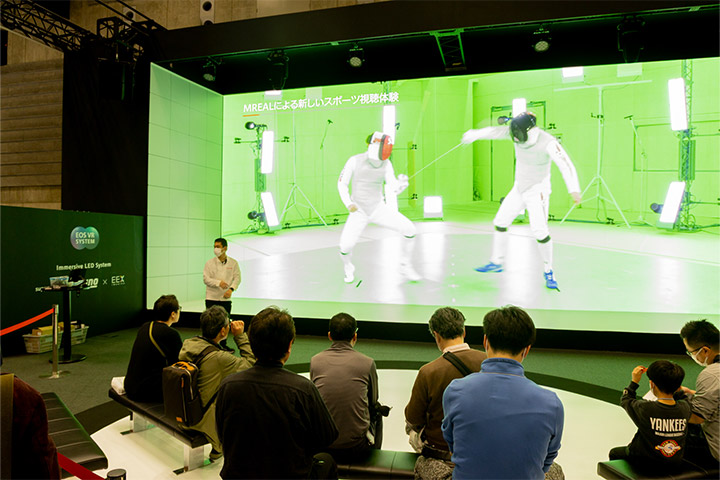 キヤノンのMRシステム「MREAL」を使用して、迫力のあるフェンシングのMR映像をご体験いただきました。