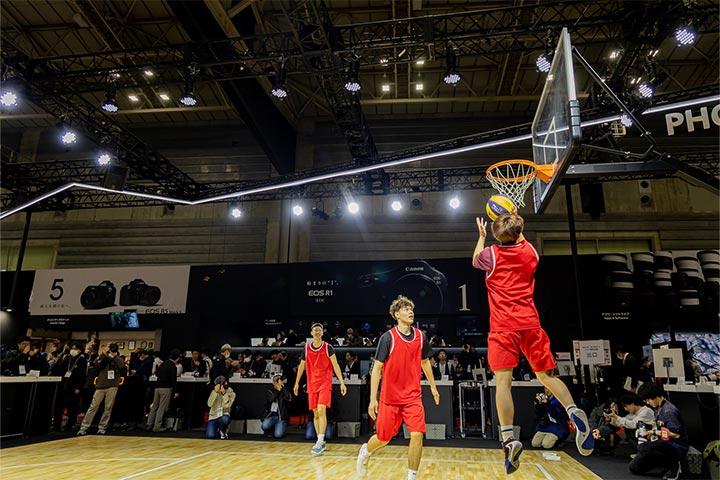 EOS R SYSTEM撮影体験では、バスケットボールとチアリーディングで、EOS R SYSTEMの快適なAF撮影のアクション優先機能やトラッキング性能を体験していただきました。また1971年誕生のF1から始まり、各時代のプロフェッショナルに愛された1シリーズを展示しました。