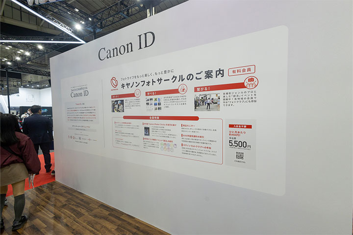2024年にリニューアルした個人のお客さま向けコンテンツおよびサービス「Canon ID」。オンラインショップのほか、EOS学園、Canon Photo CircleなどのサービスがひとつのIDで利用できることをご紹介しました。またスマートフォンを用いて会場チェックインして頂いたCanon IDご登録者に、限定デザインのステッカープレゼントや、EOS R5 Mark IIなどがあたる抽選プレゼントを実施しました。