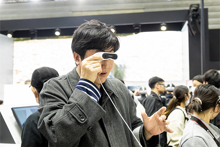 キヤノンはディスプレイ表示やプリントを超えた表現に取り組んでいます。CP+2025では、これまで以上の規模で多くのお客さまにEOS VR SYSTEMを用いた3D画像生成やMR(複合現実)システムをご体験いただきました。