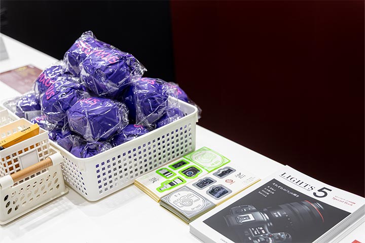 ラウンジに模したセットで、サードパーティアイテムを装着したさまざまな撮影機材を展示すると共に、撮影や機材に関する専門的なご相談に応じました。