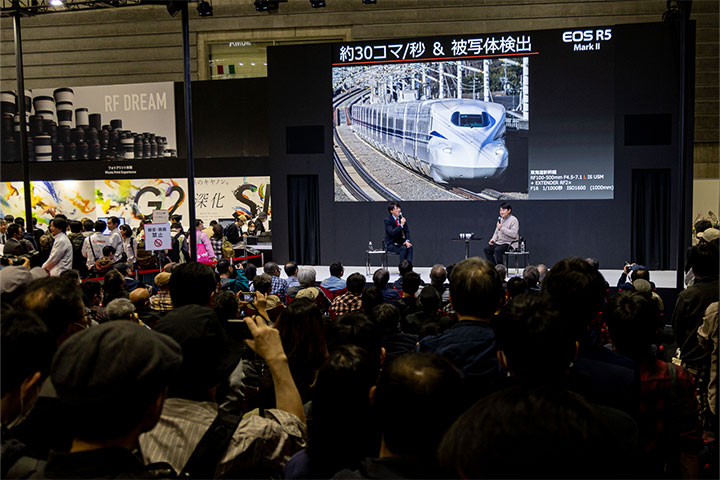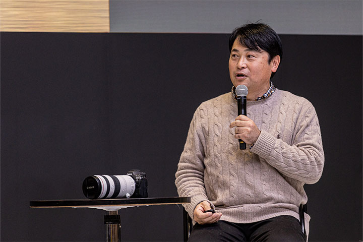 今年も第一線で活躍するフォトグラファーと映像クリエイターにご参加いただき、撮影した写真や動画と共にセミナーやプレゼンテーションを行っていただきました。プレゼンテーションステージでは、EOS R SYSTEMを活用する写真家が、自らの作品を大画面で移しながら、撮影のノウハウやエピソードを紹介。その様子はライブでも配信され、多くの方にご試聴いただきました。