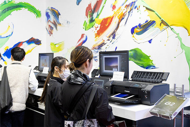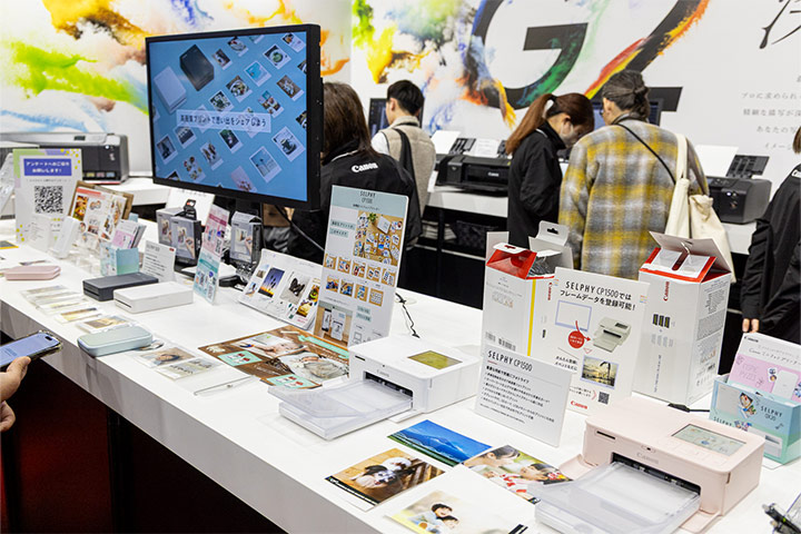 撮影した写真は、「フォトプリント体験」エリアで、最新のPIXUS PRO-G2とPRO-S1 Mark IIで印刷するサービスも行いました。またスマートフォンからWiFi経由で印刷ができるフォトプリンターSELPHY CP1500もご体験いただきました。